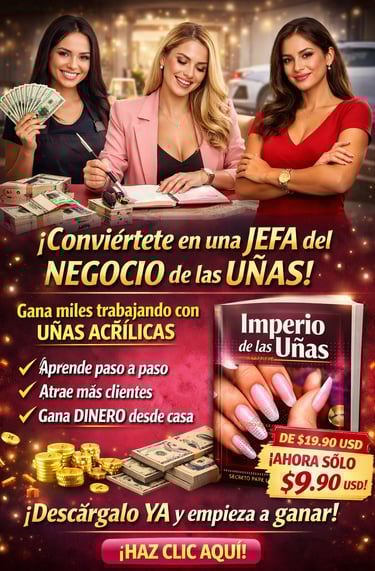 Ha considerado la posibilidad de iniciar su propio negocio, dedicándose a lo que realmente le apasiona y al mismo tiempo generar ingresos de manera efectiva? Este eBook ha sido diseñado especialmente para mujeres como usted — que están dando sus primeros pasos, llenas de entusiasmo, valentía y el genuino deseo de transformar sus vidas a través del fascinante mundo de las uñas. Aquí encontrará todo lo que necesita: desde los materiales fundamentales, el paso a paso de cada técnica, hasta cómo establecer tarifas adecuadas, atraer a sus primeras clientas y convertir esta habilidad en una fuente principal de ingresos. ¡Su camino hacia la independencia financiera comienza hoy!