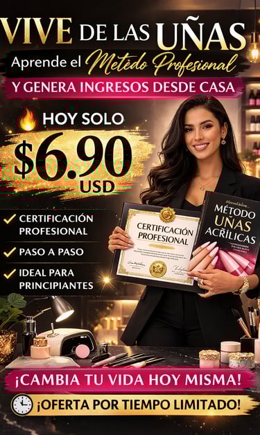 Con Imperio de las Uñas aprenderás paso a paso cómo convertir una habilidad simple en una fuente real de ingresos — incluso si empiezas desde cero.